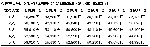 生活扶助基準(第1類+第2類)①153,216円>生活扶助基準(第1類+第2類)②149,026円