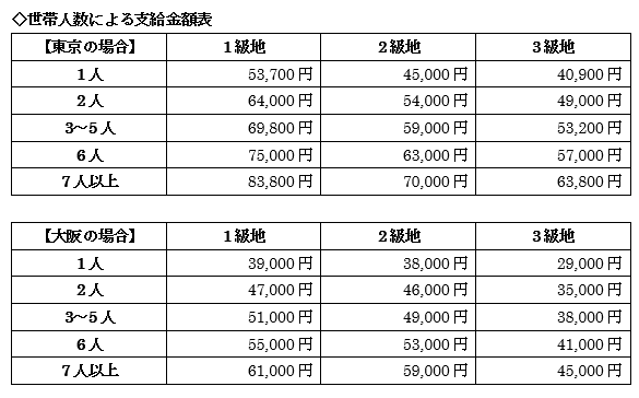 以下、東京と大阪の主要都市の上限金額の例です。