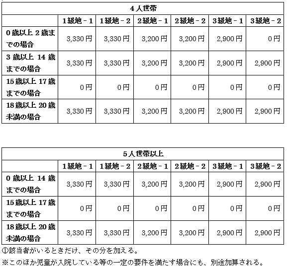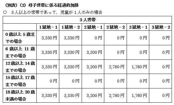 最後に母子加算、1級地、子ども2人の場合の加算