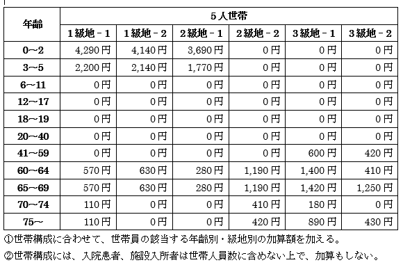 級地区分と世帯人員の年齢と人数から計算する