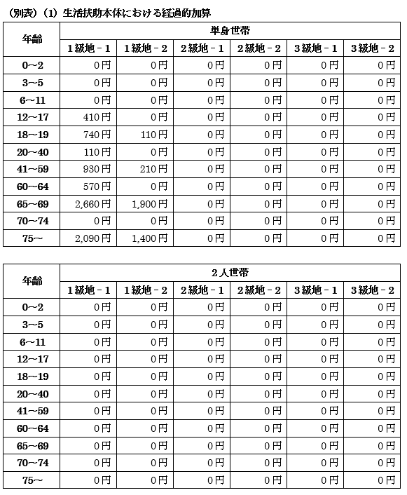 従って、今回は採用される基準は数値の高い生活扶助基準(第1類+第2類)①です。